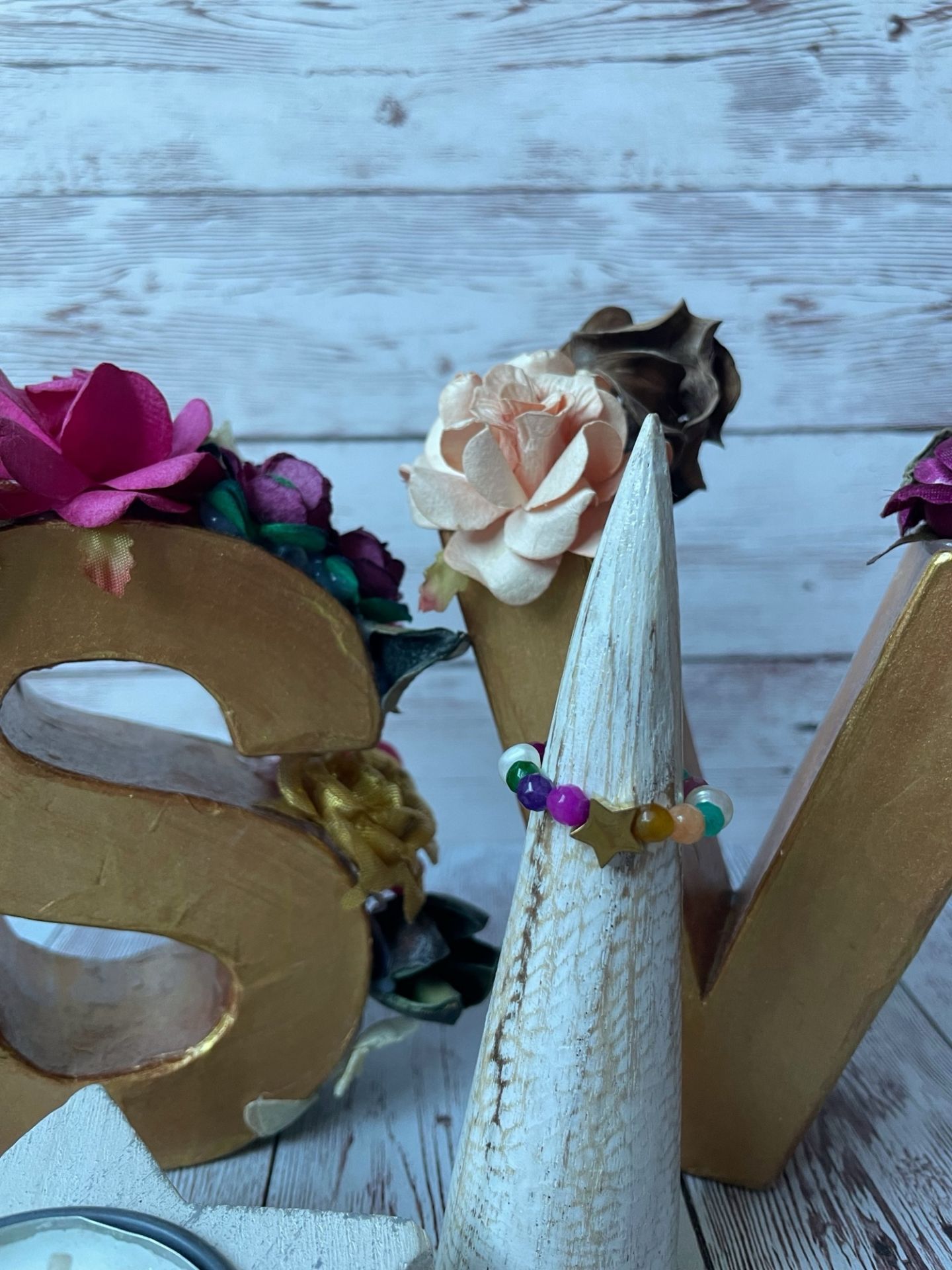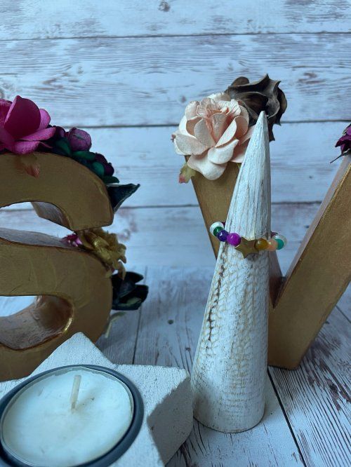 Este diseño único incluye una entrepieza de acero inoxidable, que en este caso es una delicada estrella. ¡Personalízalo a tu gusto! Ofrecemos más opciones de entrepiezas para que encuentres el símbolo que más te represente. Ideal para darle un toque de estilo y color a tu look diario.