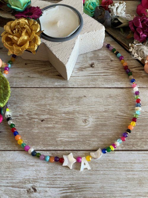 Collar hecho con bolas naturales de colores de diferentes tamaños (jade/ágata) y perlas de río.