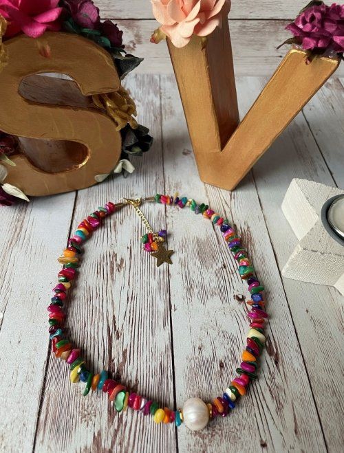 ¡Descubre la elegancia natural con nuestro collar corto de piedras semipreciosas y una perla de río en el centro o sin perla!